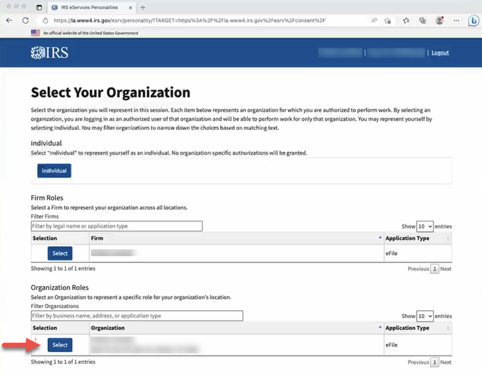 Sign into the IRS consent page