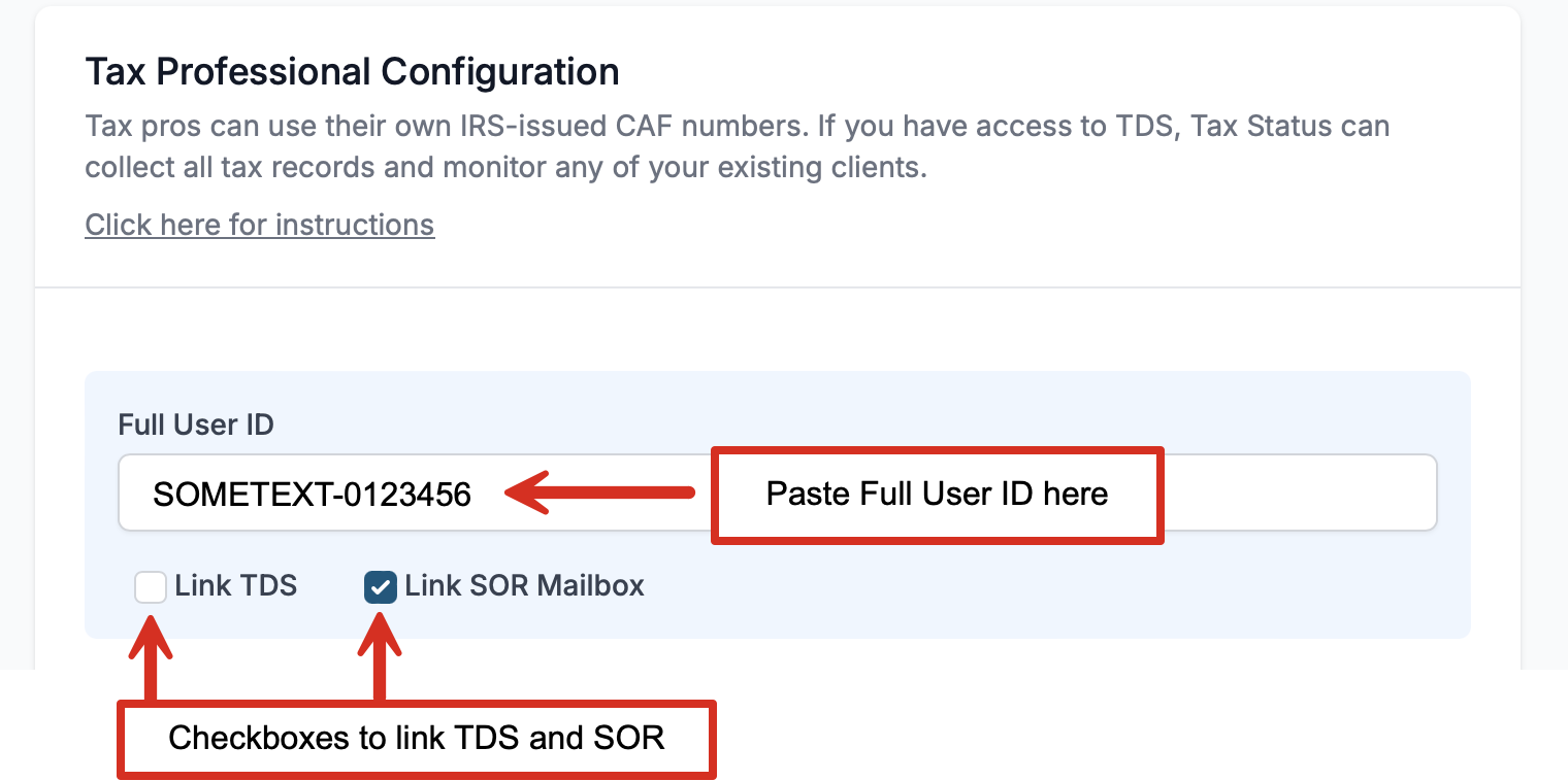 Click below to open your TaxStatus profile and paste the Full User ID into the Tax Professional section.